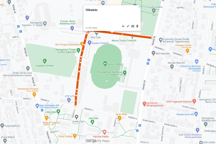 Útlezárásr kell számítani emellett 5 óra és 16 óra között a Nyíregyháza, Sóstói út és a Stadion köz kereszteződésénél, valamint a stadion előtti útszakaszon. Forgalomkorlátozásra és forgalomelterelésre lehet számítani a stadion környezetében lévő utakon, valamint a stadion és a nyíregyházi vasútállomás közötti útszakaszon id.